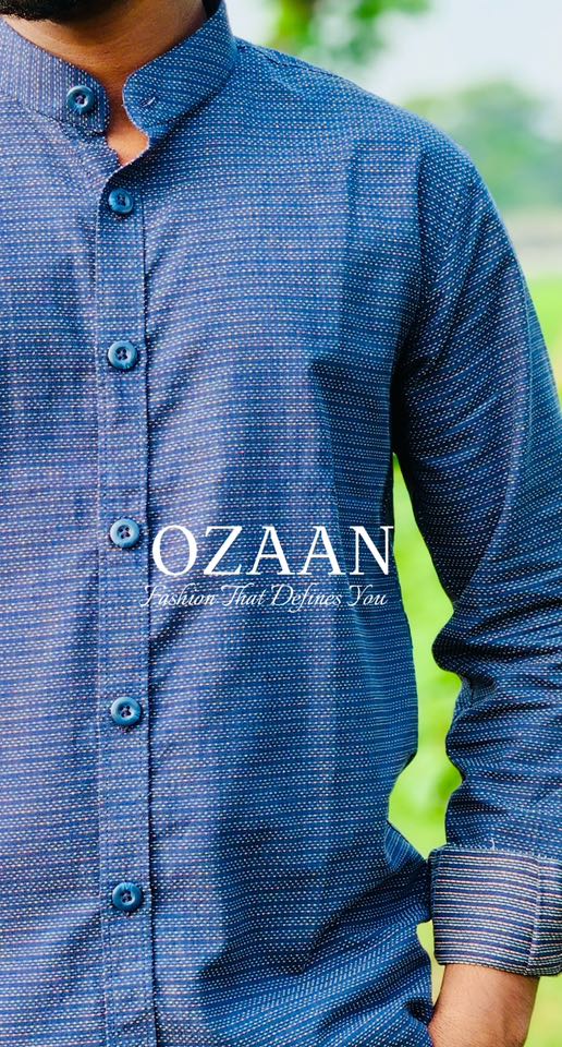 Men’s Navy Mandarin Collar Shirt – Slim Fit Micro-Texture is engineered for the modern individual who moves seamlessly between a high-rise office and a relaxed weekend brunch. This isn’t just another navy shirt—it is a study in texture, fit, and contemporary tailoring.